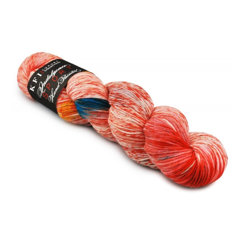 Indulgence Sport is a beautiful superwash sport weight yarn with sumptuous colorways and a beautiful feel to knit or crochet with. This yarn would make beautiful shawls, cowls, scarves and children's wear.