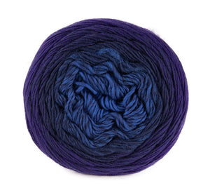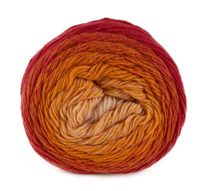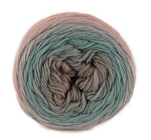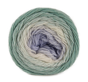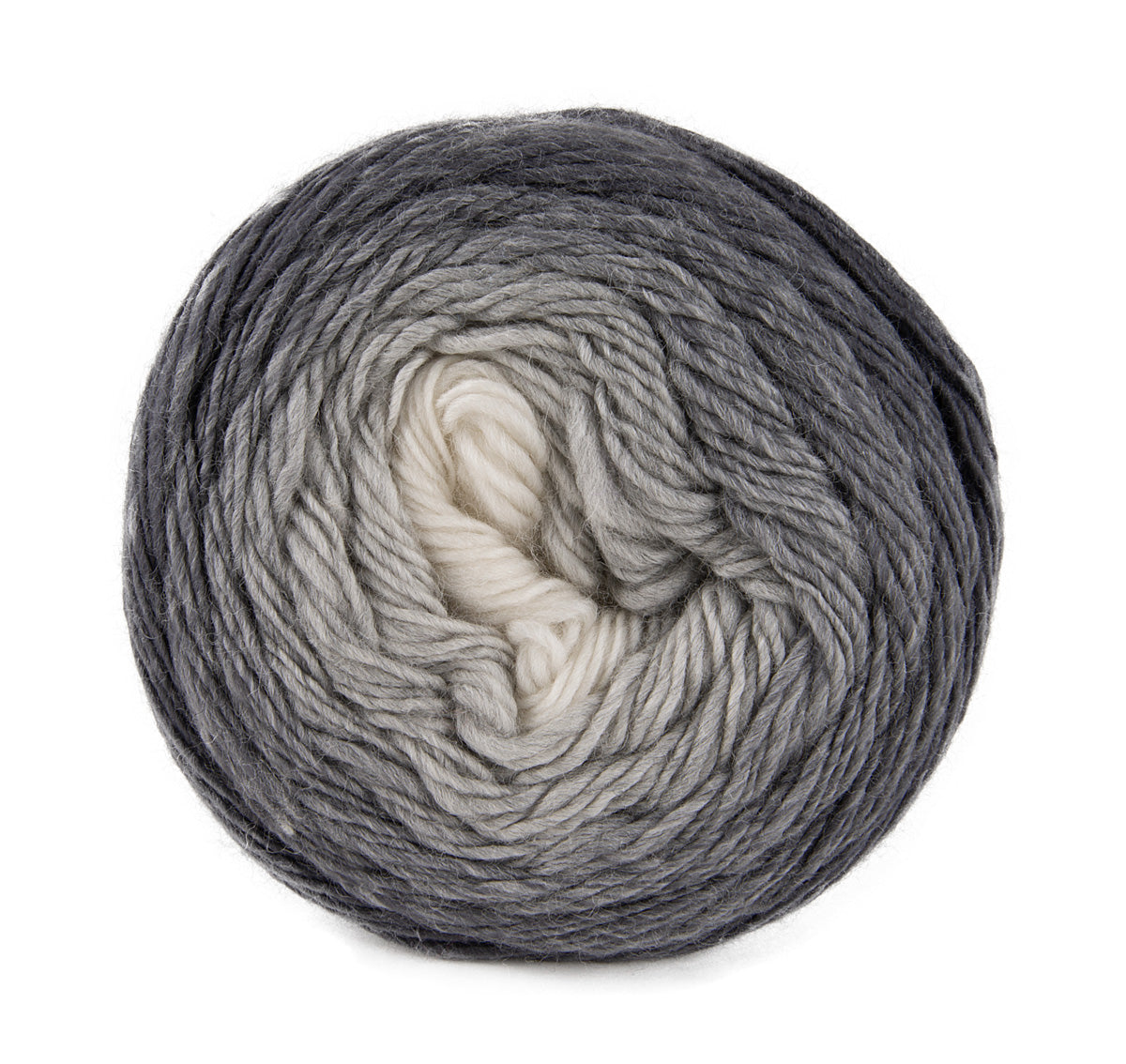 Laines du Nord Poema is a 100% mulesing-free multicolour wool. The shades combine in a perfect sequence to produce a gradual degrade or ombre effect. The delicate shading makes it ideal for soft autumn and winter knitting. Using just one 656 yard ball, an entire shawl or oversized scarf can be created.