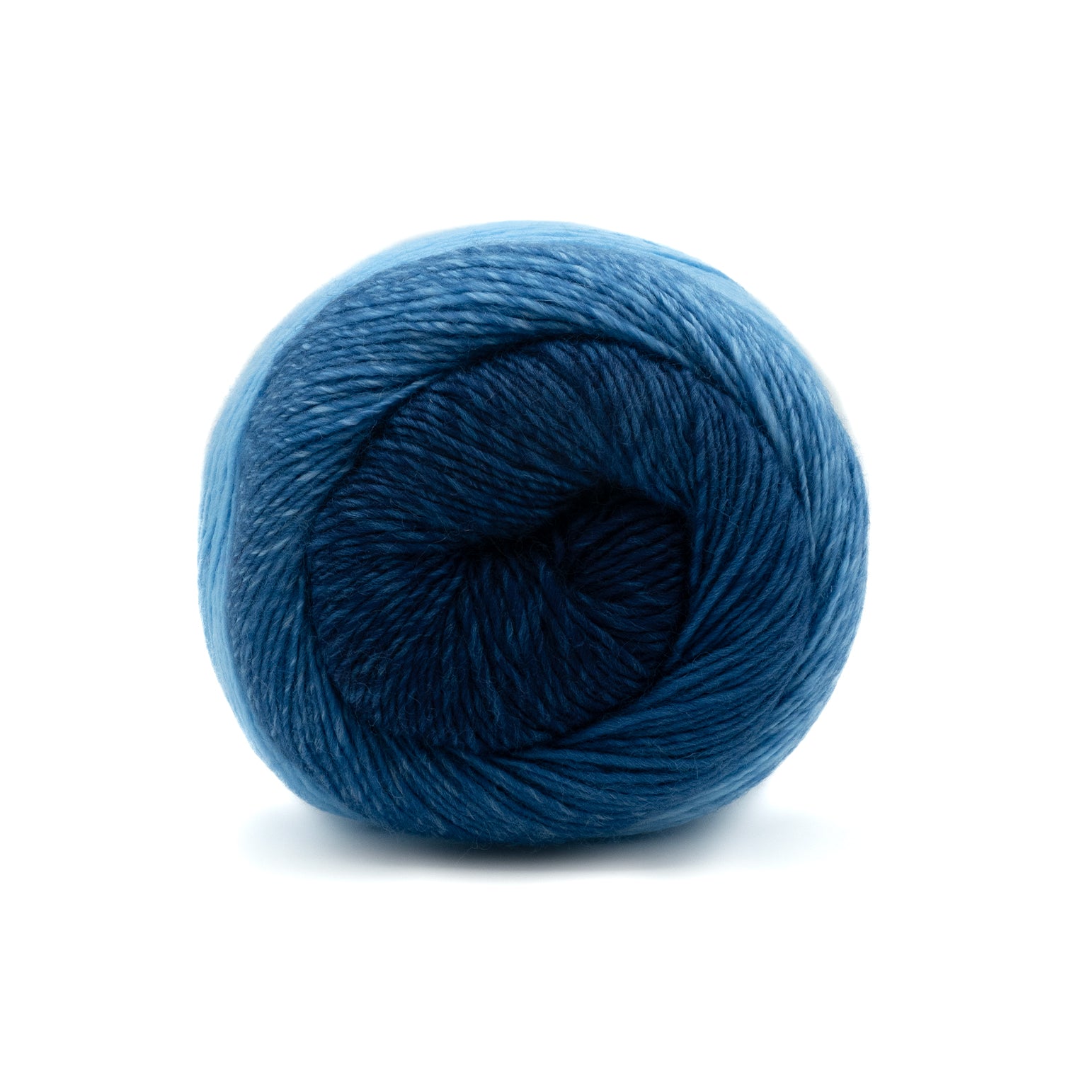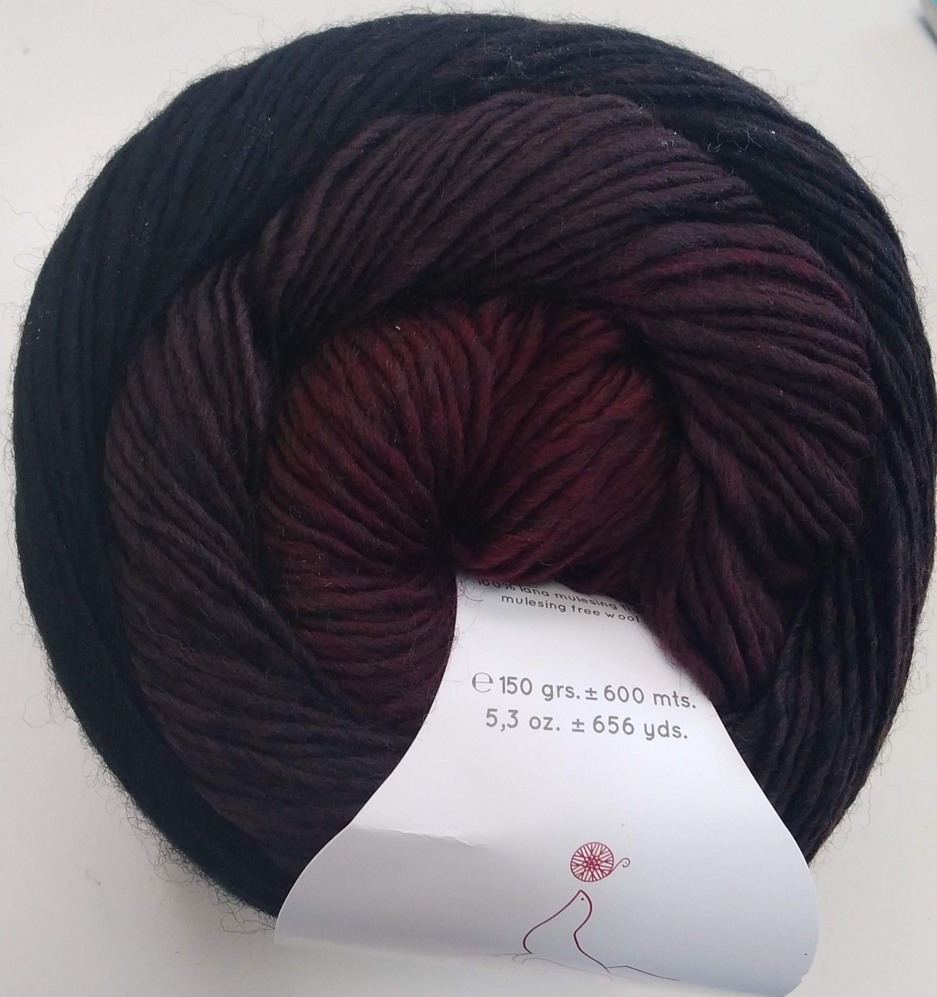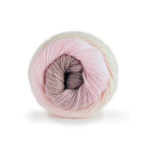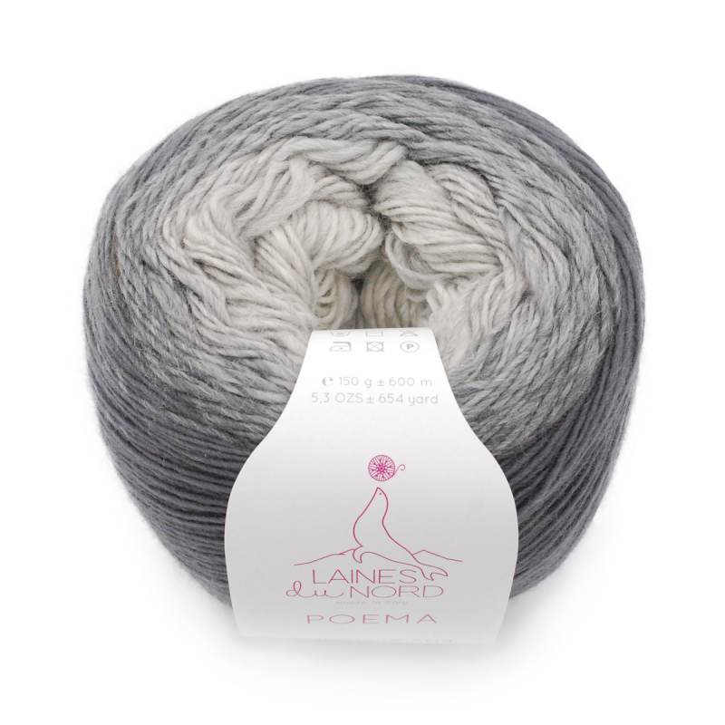 Laines du Nord Poema is a 100% mulesing-free multicolour wool. The shades combine in a perfect sequence to produce a gradual degrade or ombre effect. The delicate shading makes it ideal for soft autumn and winter knitting. Using just one 656 yard ball, an entire shawl or oversized scarf can be created.