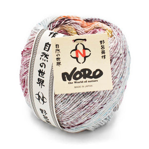 Noro Ohajiki is named after a children's game The colorways for Ohajiki are reminiscent of how the game pieces look with light passing through them. Each ball embarks on a color journey of happiness & reminds us of the simple pleasures of childhood. Ohajiki is a timeless blend of Cotton, Silk, Wool, & Viscose. This beautiful yarn in ice cream tones works up in delicate stripes. An excellent choice for tops, shawls, summer dresses, and beyond!